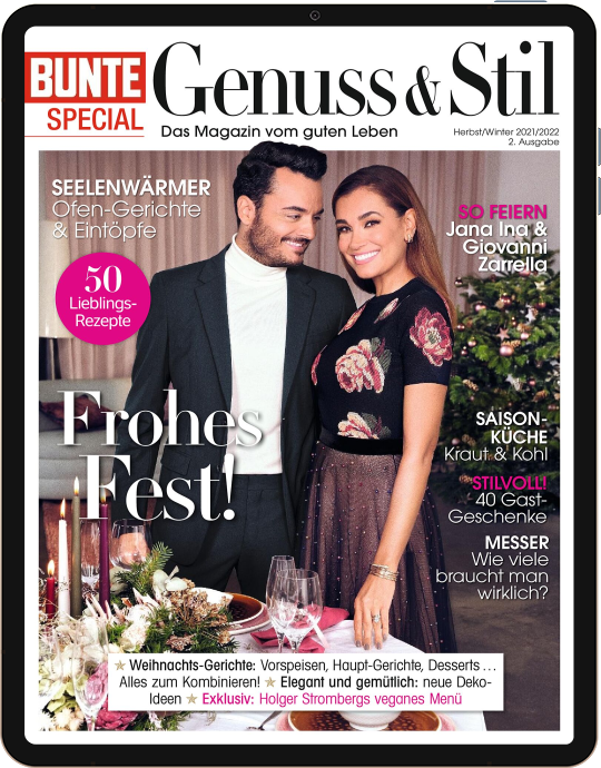 In unserer neuen Ausgabe BUNTE Genuss & Stil geht es rund um das Thema „Weihnachtsfest“. Das Sonderheft nimmt die Leserinnen mit auf eine Tour d’Horizon durch Gastronomie, Lifestyle und Society. Es reicht von Rezepten bis zu Rezeptionen kulinarischer, ernährungswissenschaftlicher und gesellschaftlicher Trends und Strömungen, es führt durch Küchen und führt Küchentisch-Gespräche, es wärmt am Herd, mit Humor und Herzensbildung, es verschmilzt Emotion und Essen, Wein und Wahrheit. Ganz à la BUNTE liegt der besondere Schwerpunkt auf Inhalten mit Bezug zu prominenten Persönlichkeiten.