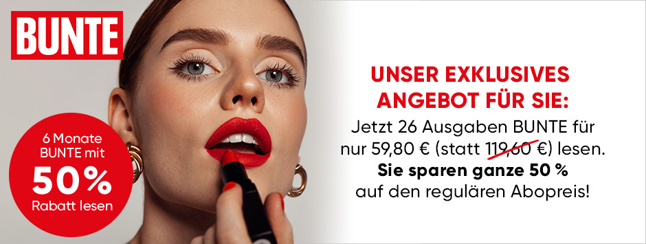 • Die Abo-Belieferung erfolgt ggf. inklusive BUNTE-Sonderausgaben zum Preis von je 4,60 €